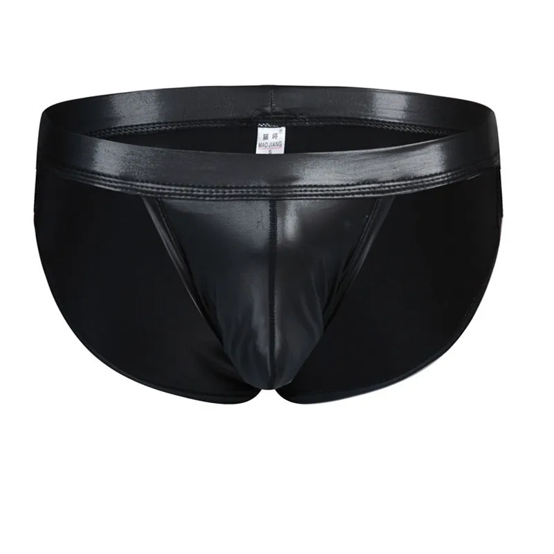 Трусы-слипы мужские из искусственной кожи, пикантное нижнее белье с низкой посадкой, с U-образным выпуклым мешочком для пениса, эротические бесшовные брифы для геев