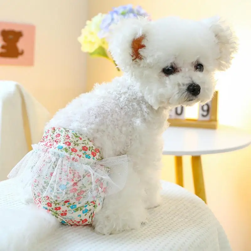 Трусы-шорты для домашних животных, многоразовые моющиеся подгузники с цветочным рисунком, для разогрева, для маленьких щенков