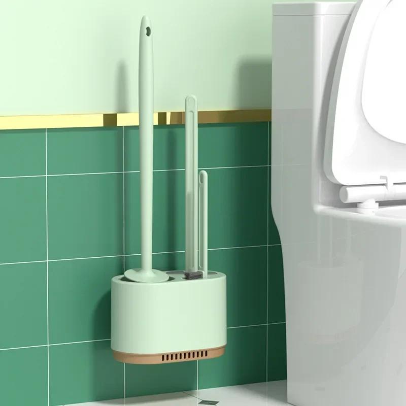 Туалетная щетка силиконовая без перфорации настенная многофункциональная 3 в 1 чистящие средства с кронштейном аксессуары для ванной комнаты и туалета светло-зеленый