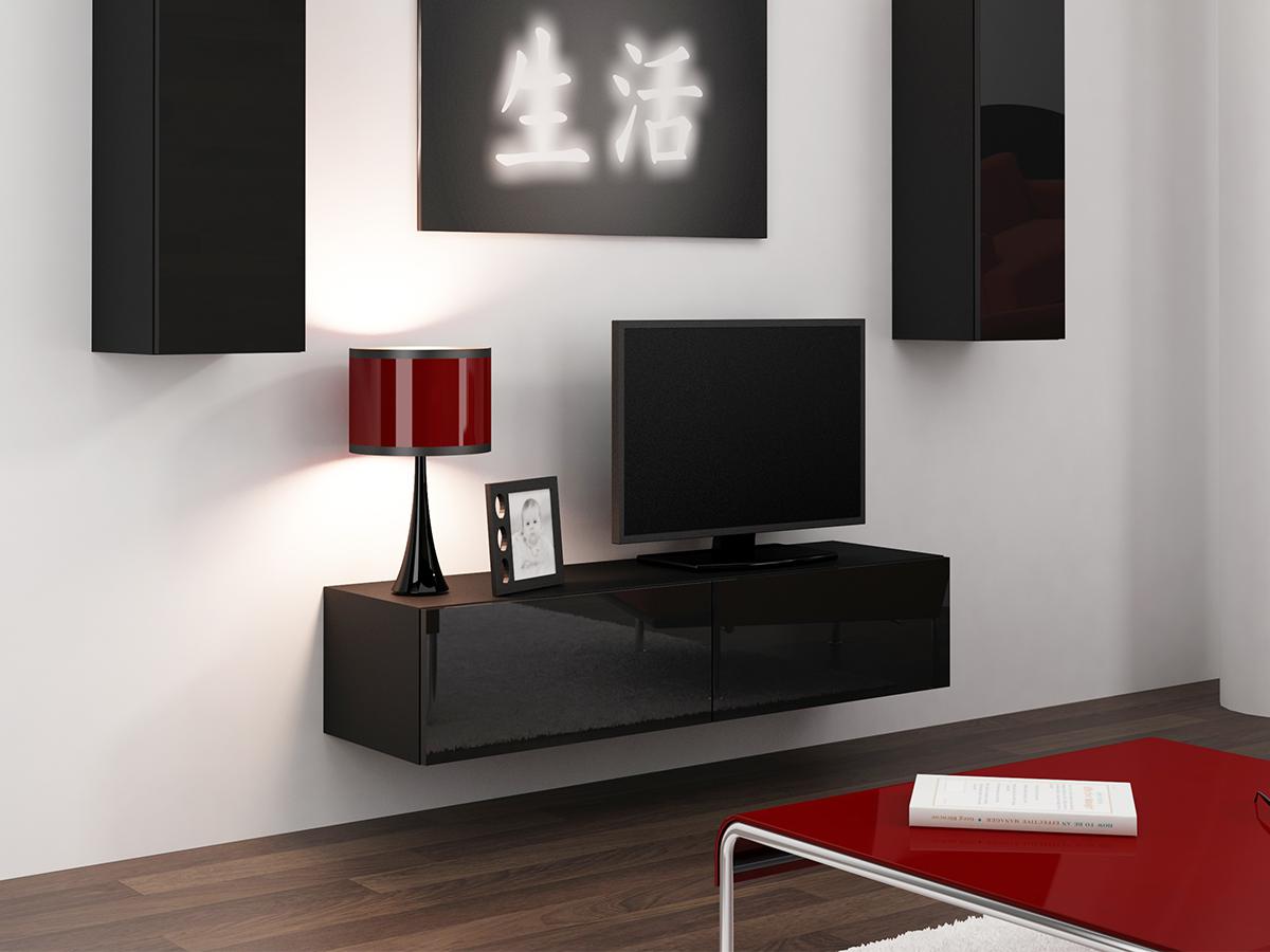 Тумба под ТВ подвесная Vigo 140 Cama Черный матовый + Черный глянец