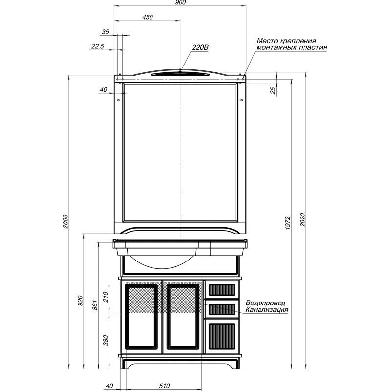 Тип - тумба под умывальник, Материал - ЛДСП, МДФ, Способ установки - напольная, Цвет - белый, Ширина - 91.5 см