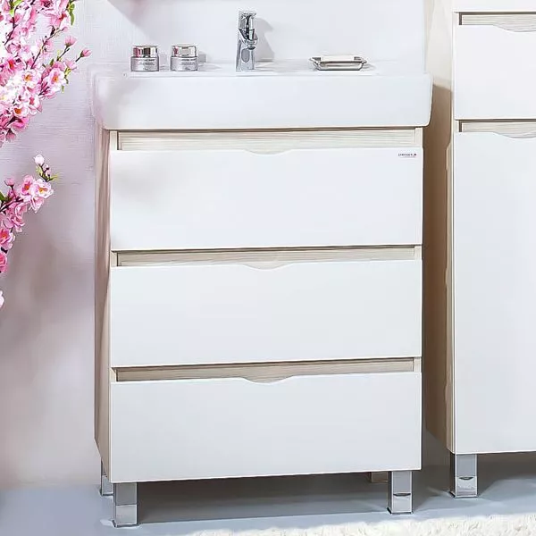 Тумба с раковиной Бриклаер Токио 70 светлая лиственница, белый глянец