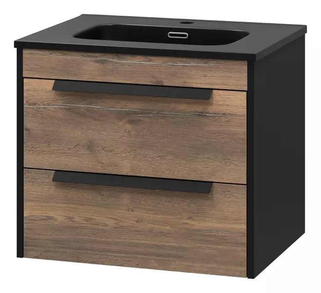 Тумба с раковиной «Brevita» Monsour 60 (9060MMB 60) подвесная дуб галифакс олово/чёрный кварц
