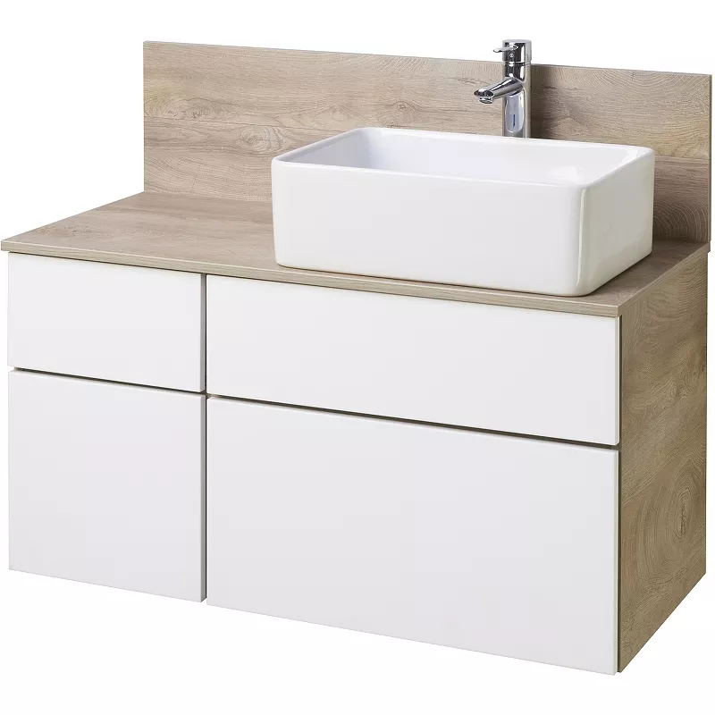 Тумба с раковиной Mila 50 и столешницей Aquaton Мишель 100 белый-светлое дерево