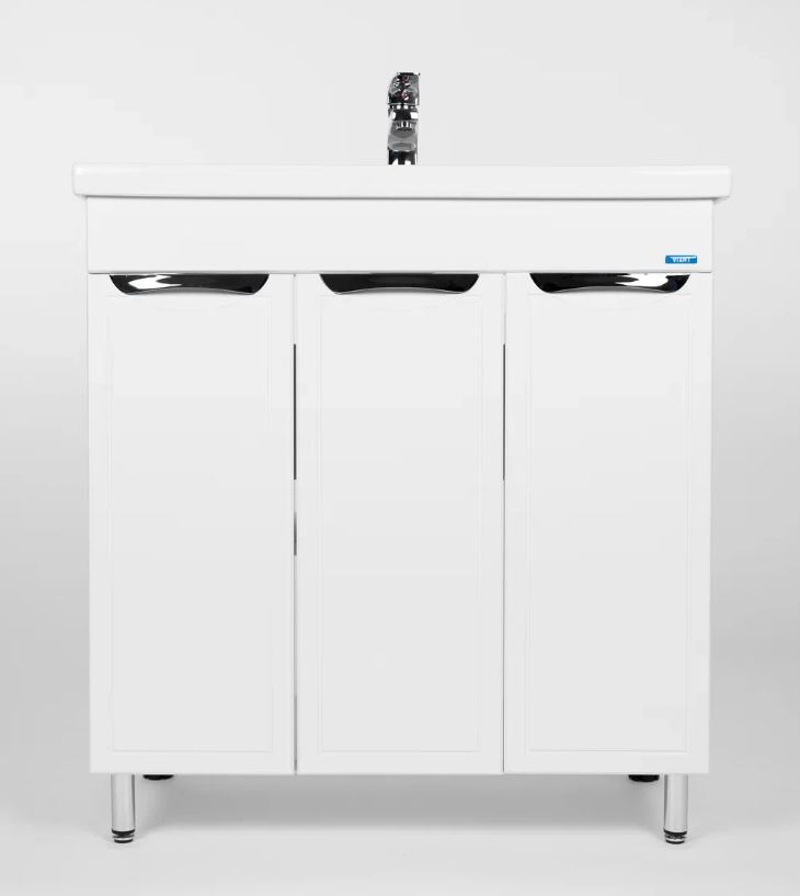 Тумба с раковиной Viant Лима 80 напольная, с полками, белая, Белый