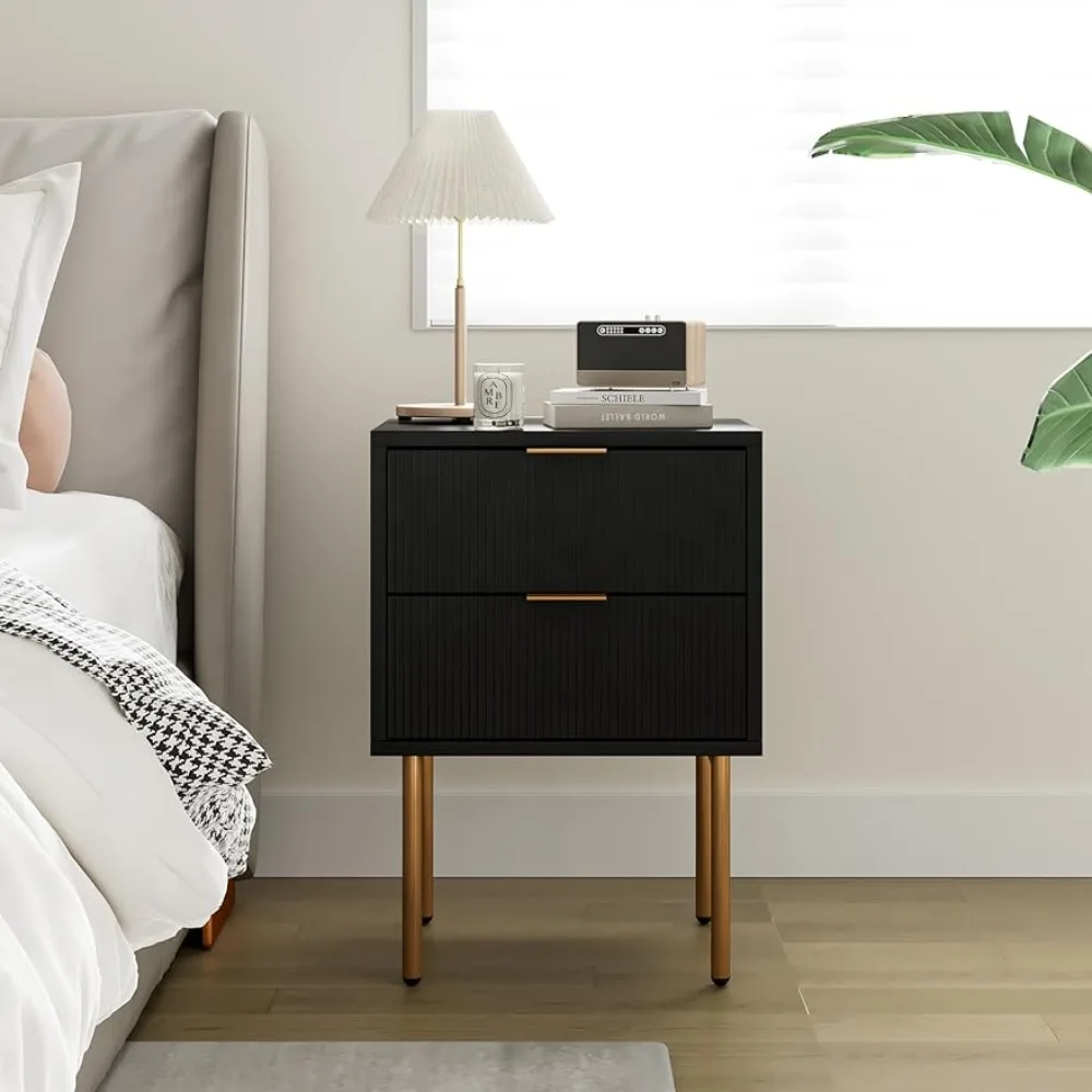 Тумбочка, современный прикроватный столик среднего века с 2 ящиками для хранения, маленький боковой столик с золотой рамой