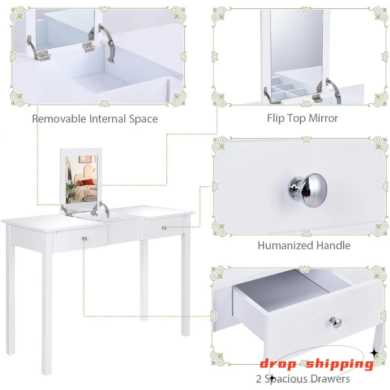 Тумбочка с откидной крышкой Nightcore, набор туалетного столика для макияжа с квадратным зеркалом, 1, белый