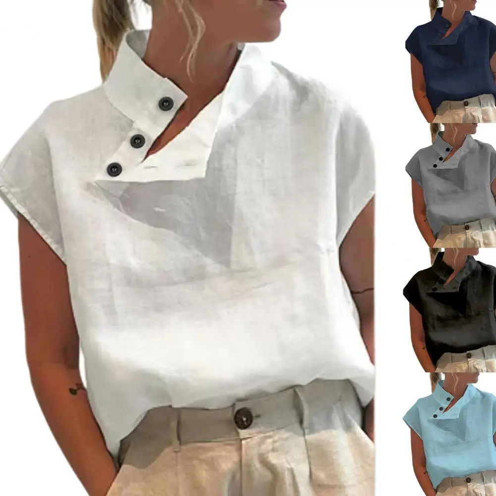 Туника Топ Свободная Женская блузка без рукавов с воротником-стойкой женская блузка