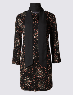 Туника из вискозы в мелкий рисунок с шарфом, Черный микс