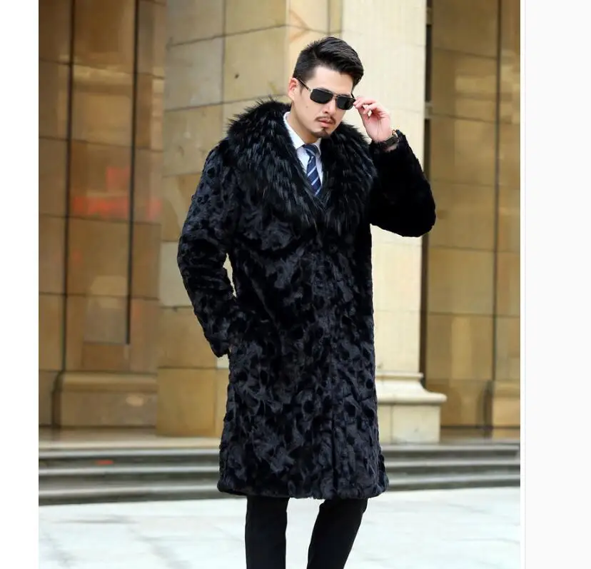Autumn And 2021 Winter New Men's Faux Coats Whole Mink Fox Fur Lapel Long Windbreaker Jacket Singer Costumes