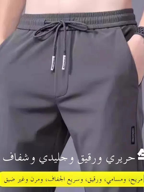 Ледяной шелк, свободный крой, прямые повседневные брюки, мужские летние тонкие спортивные длинные брюки, дышащие удобные молодежные брюки для активного отдыха