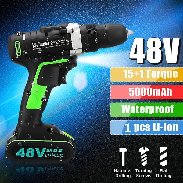 48v 3 в 1 cordless электродрели 15 + 1 динамометрический инструмент для сверления двойной скорости электрическая отвертка дрель w / 1 или 2