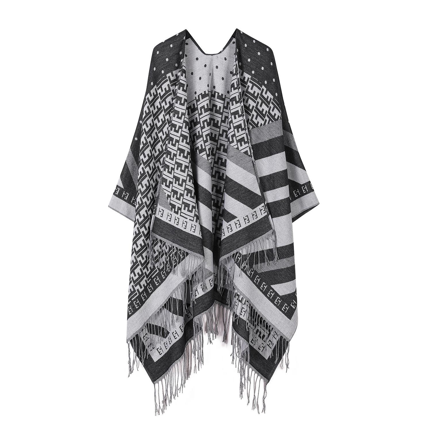 Туристическая большая шаль женская внешняя с геометрическим узором, кондиционируемый комнатный плащ, удобный двухсторонний плащ с бахромой чёрный