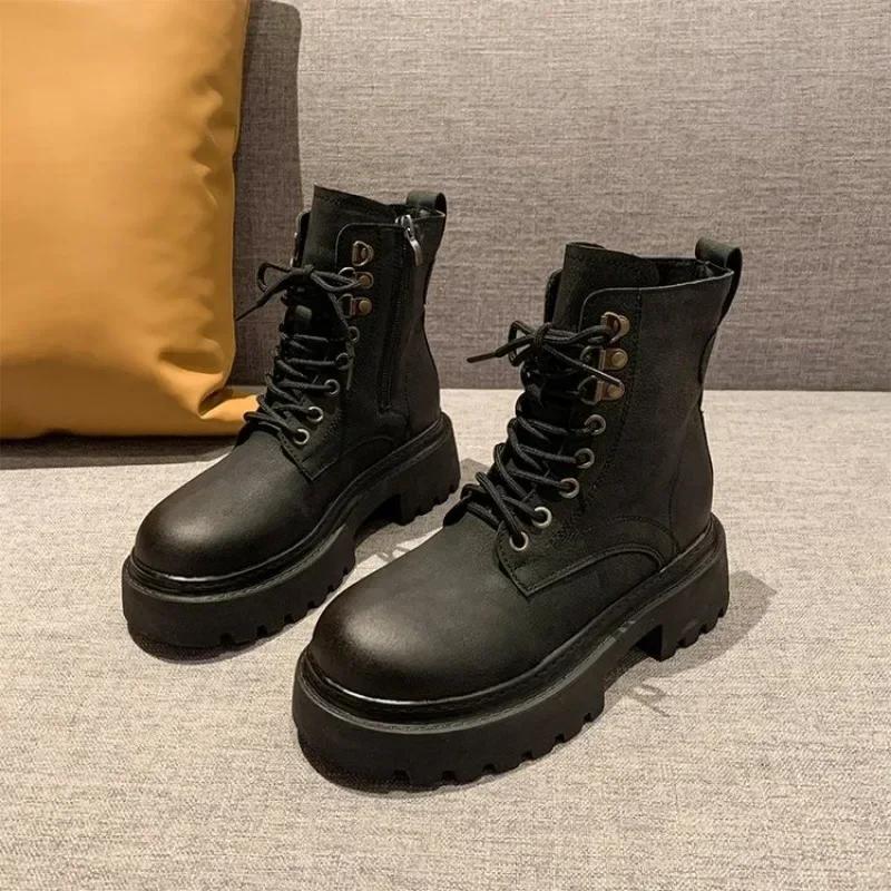 Туфли Лолита Сапоги Молния Сапоги-Женщины Роскошные Дизайнерские Круглые Носки Дамы Высокий Каблук 2024 Рок Ботильоны Мода Резиновые Осень Рим Basi 40 чёрный
