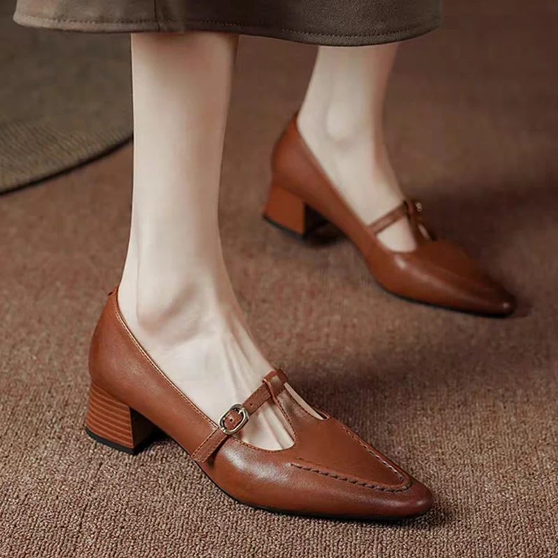 Туфли-Лоферы женские на высоком квадратном каблуке, в римском стиле