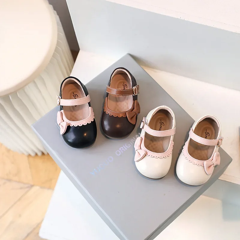 Туфли детские кожаные с бантом, мягкая подошва, круглый носок, обувь принцессы, размеры 21-35
