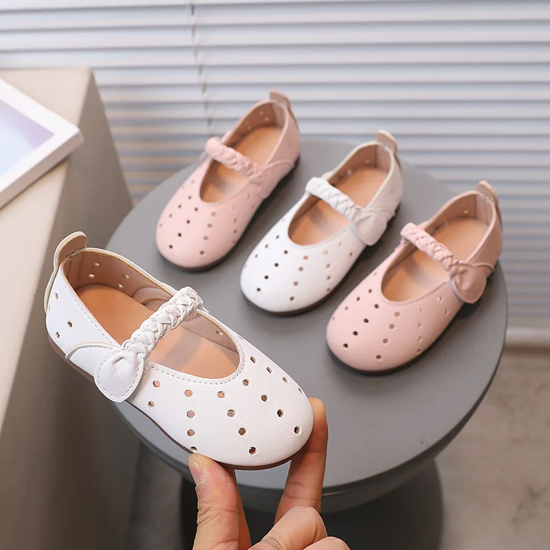 Туфли для девочек, кожаные туфли для девочек, дышащие модные однотонные детские туфли с вырезами, красивая мягкая обувь принцессы для танцев