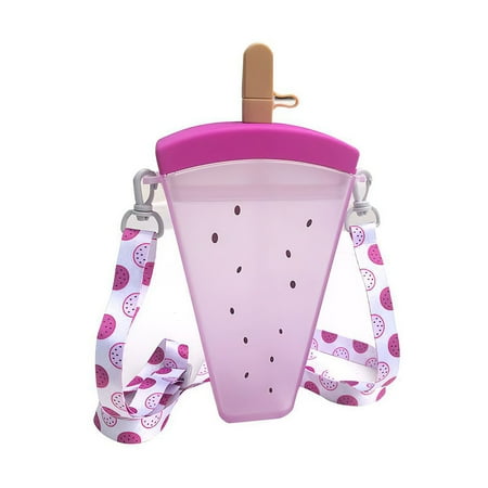 Straw Cup Cute Fruit Design Heat Insulation Water Bottle with Shoulder Strap Leak-proof Shoulder Carrying Water Container for Outdoor Children Kids