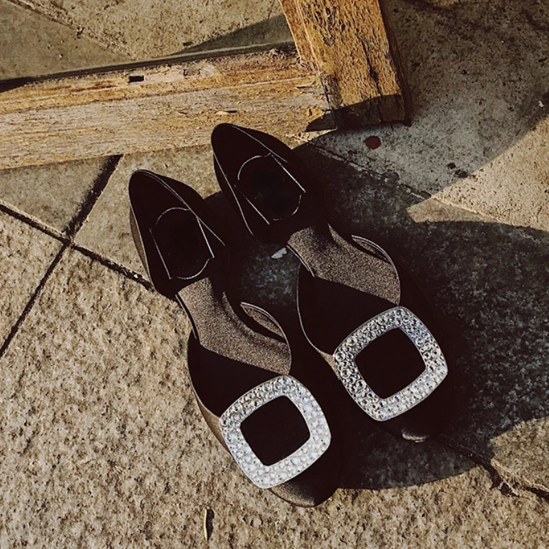 Туфли женские атласные с круглым носком, удобные балетки, плоская подошва, полые, стразы, лето 2023