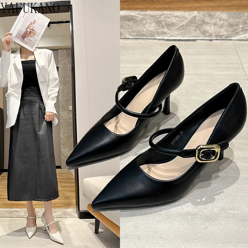 Туфли женские весенние с острым носком, на тонком каблуке, с ремешком и пряжкой