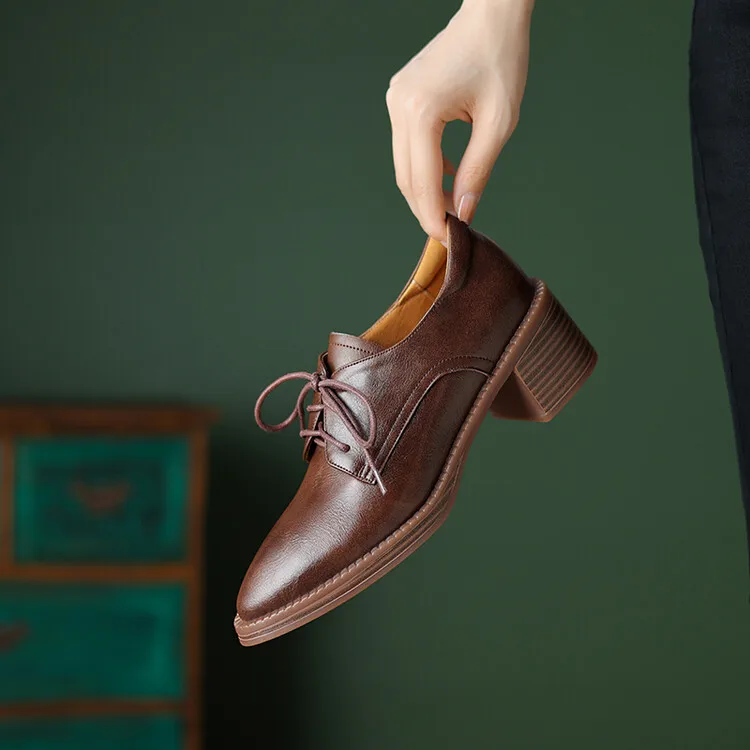 Туфли женские из натуральной кожи, с острым носком, на квадратном каблуке