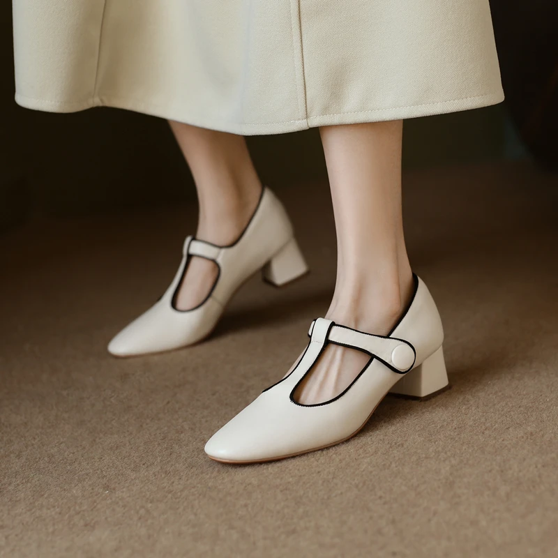 Туфли женские из овечьей кожи, высокий квадратный носок, высокий толстый каблук, средний каблук, стиль Французский