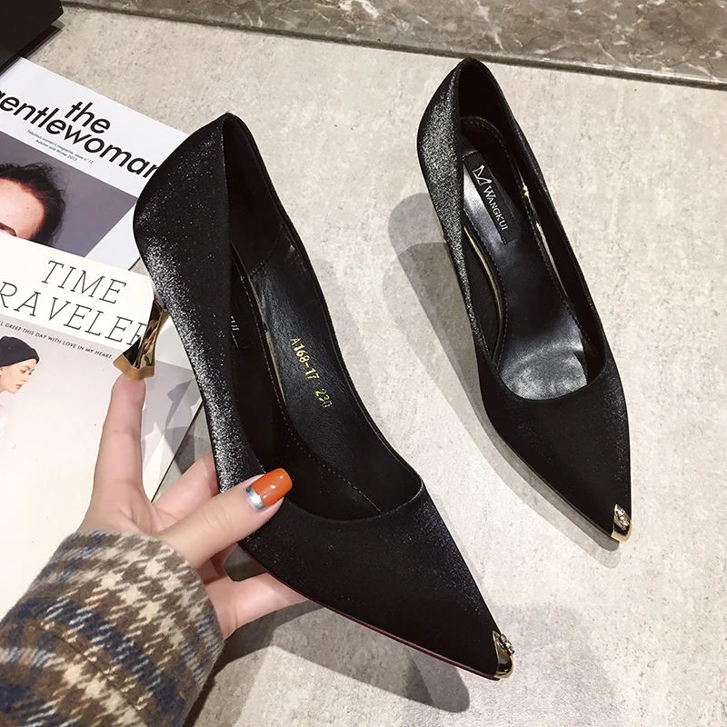 Туфли женские на высоком каблуке, офисные туфли-лодочки, ручная работа, пикантные лаконичные элегантные привлекательные, с острым носком, д...