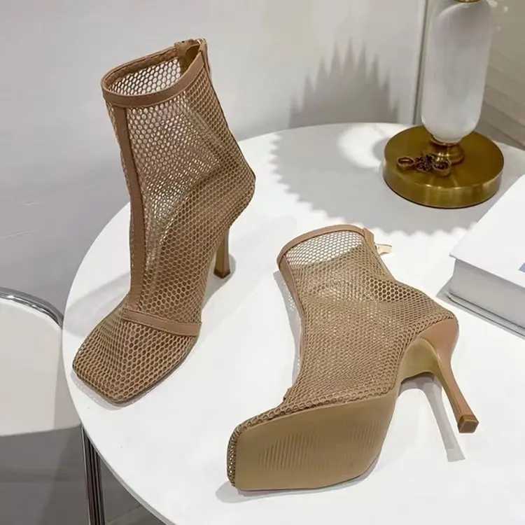 Туфли женские на высоком каблуке, пикантные сандалии для танцев, сетчатая обувь, модные вечерние босоножки, квадратный каблук, 2023