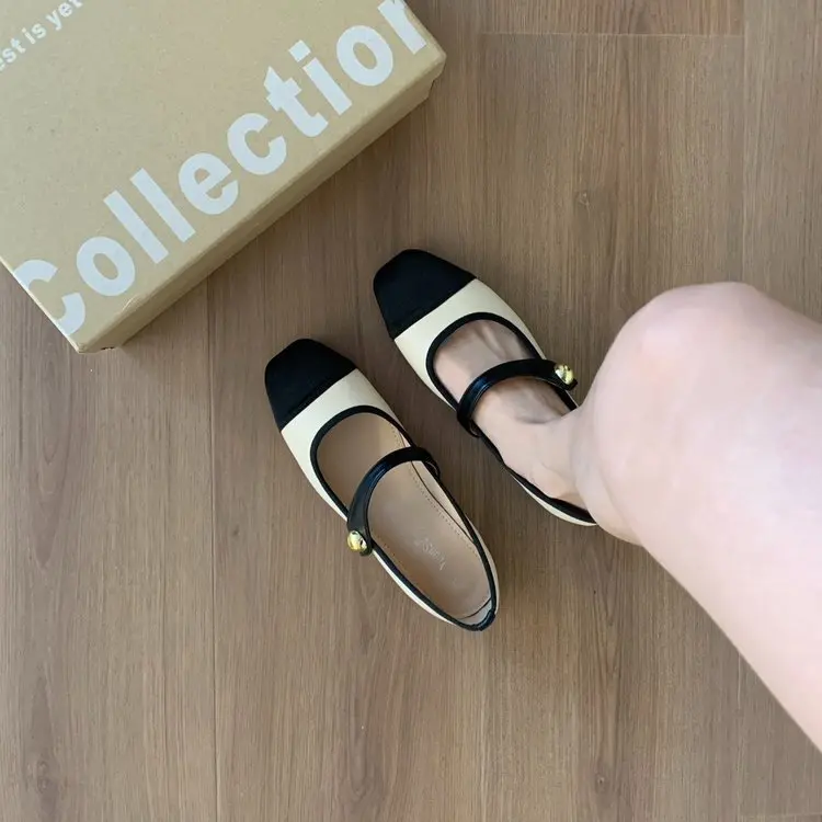 Туфли женские на низком каблуке, базовая обувь из искусственной резины, без каблука, с закрытым носком, под платье, Ba