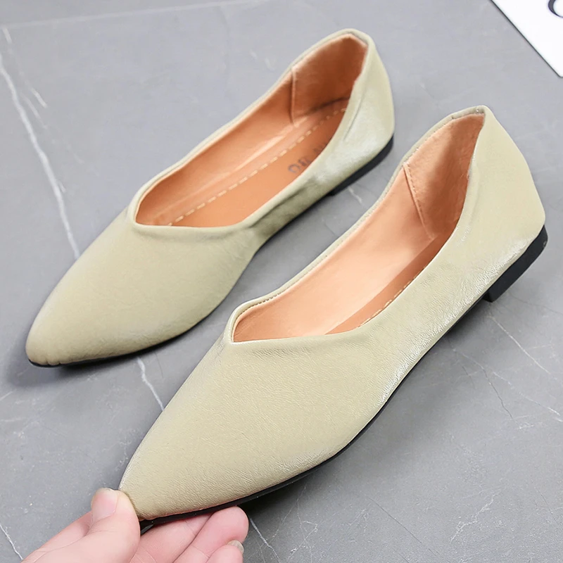 Туфли женские на низком каблуке, балетки, Нескользящие, удобные, без каблука, простые, бежевые, модель 2024