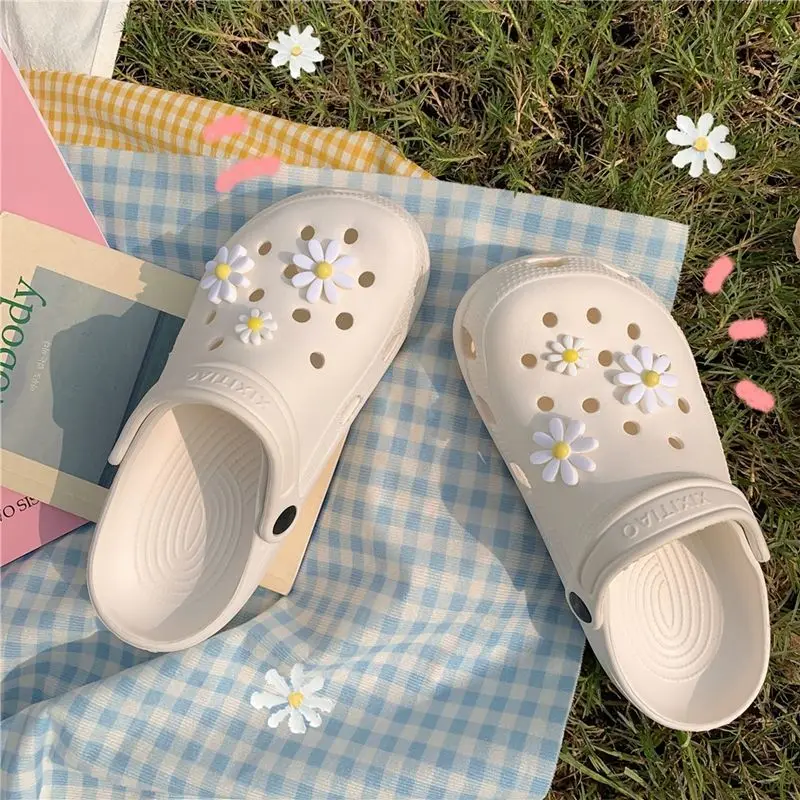 Туфли женские с дырками, Нескользящие, маленькие свежие цветы, плоская подошва, пляжные шлепанцы для медсестер, летняя обувь для пар