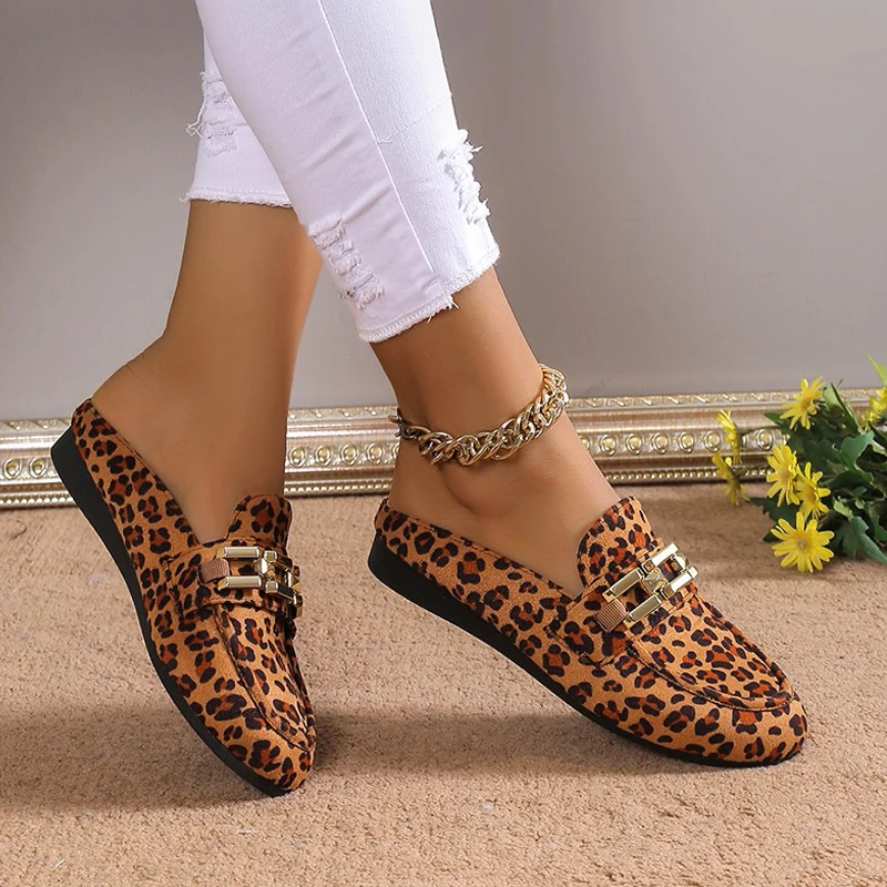 Туфли женские с леопардовым принтом, лоферы, повседневная обувь на плоской подошве, без застежки, с металлическими цепочками, осень