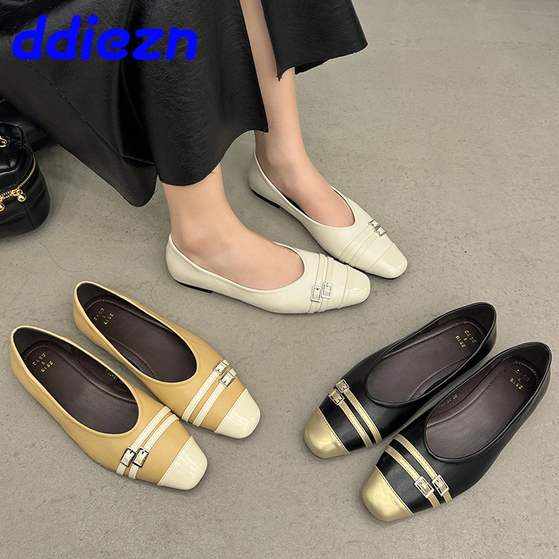 Туфли женские с острым носком, повседневная обувь на плоской подошве, без застежки, металлическая пряжка, модель 2024