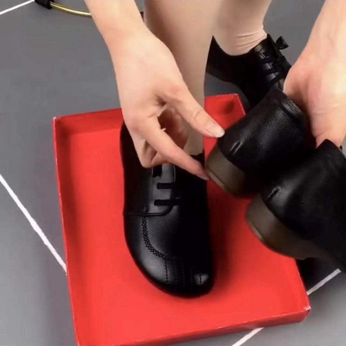 Туфли из мягкой кожи на коровьей подошве, женские весенне-осенние туфли на плоской подошве, универсальные однотонные прочные легкие туфли на мягкой подошве 41 чёрный