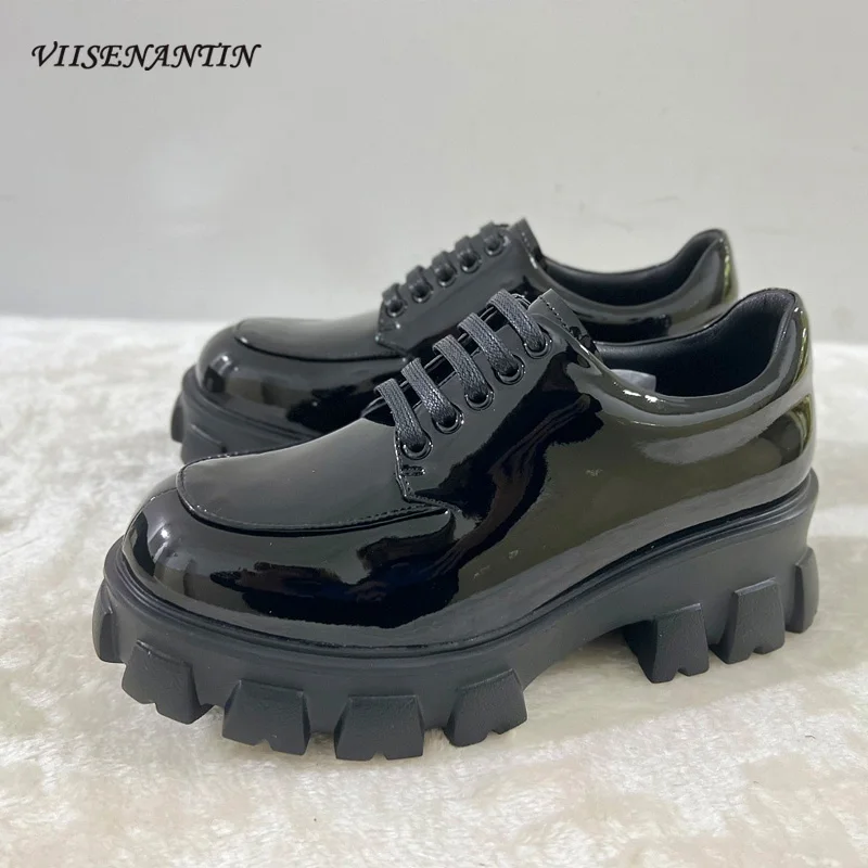 Туфли из натуральной кожи на толстой подошве для студентов колледжа