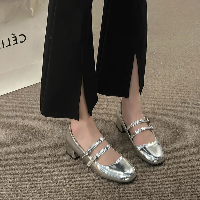 Туфли-лодочки Женские однотонные на среднем каблуке с квадратным носком и пряжкой