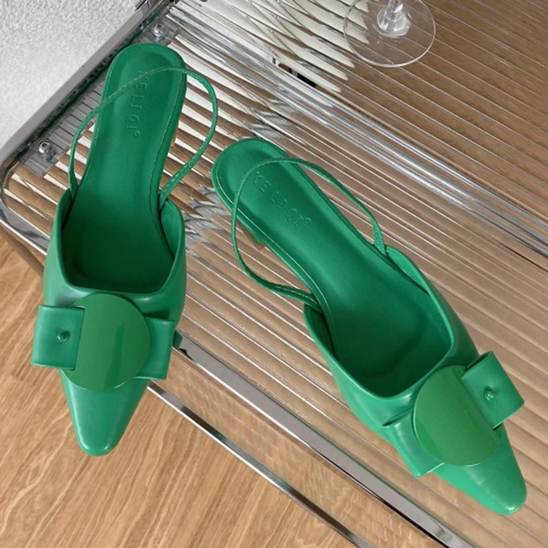 Туфли-лодочки женские без застежки, уличные шлепанцы на низком каблуке, заостренный носок, сандалии с ремешком на пятке, модель Лето 2022