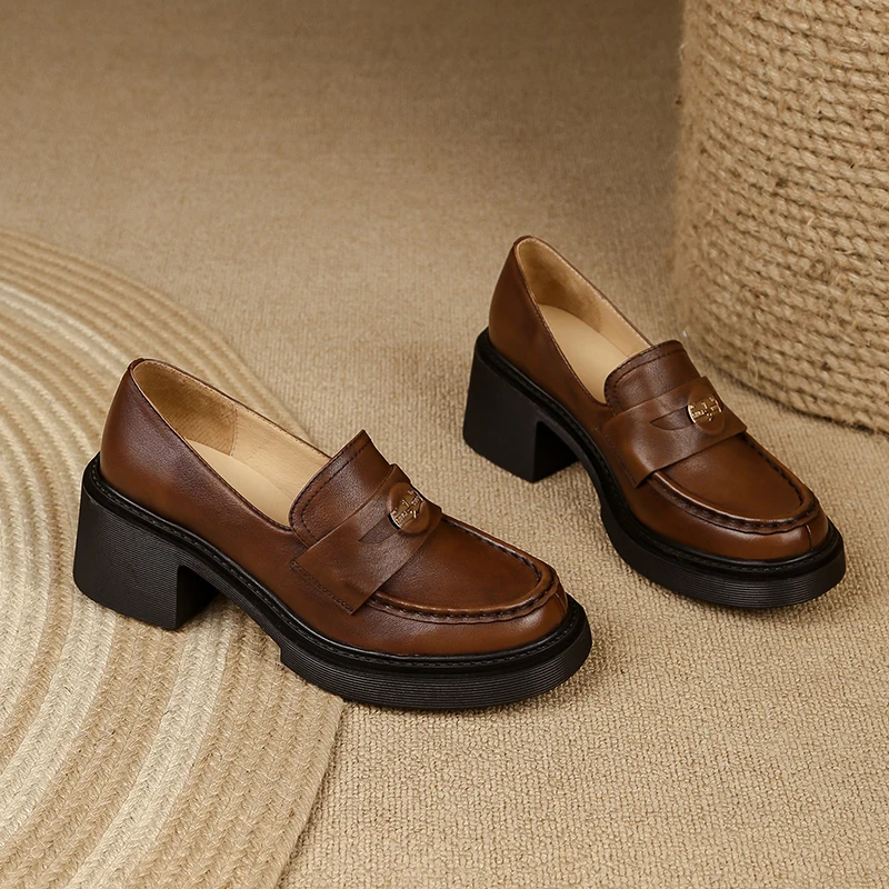 Туфли-лодочки женские из мытой воловьей и свиной шкуры, 22-25 см, весна-осень 2023