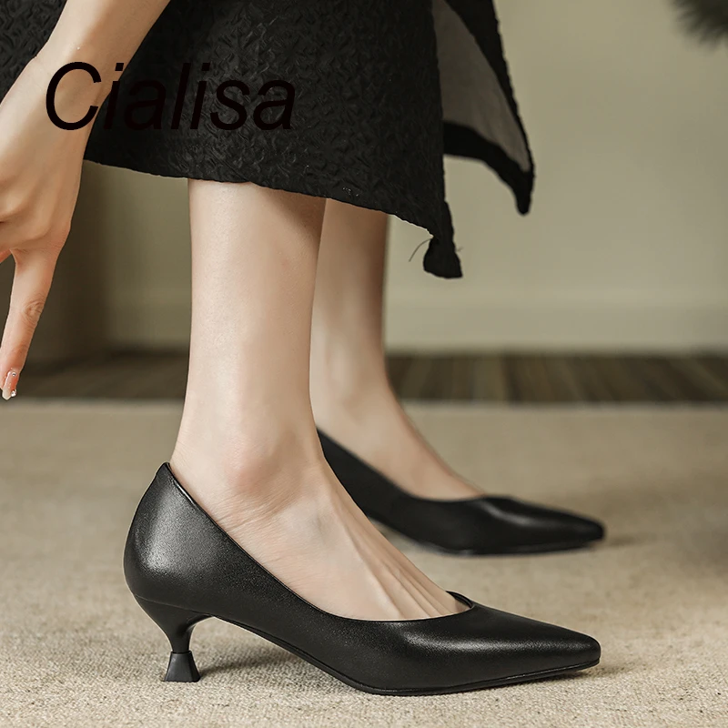 Туфли-лодочки женские из натуральной кожи, с острым носком, на среднем каблуке