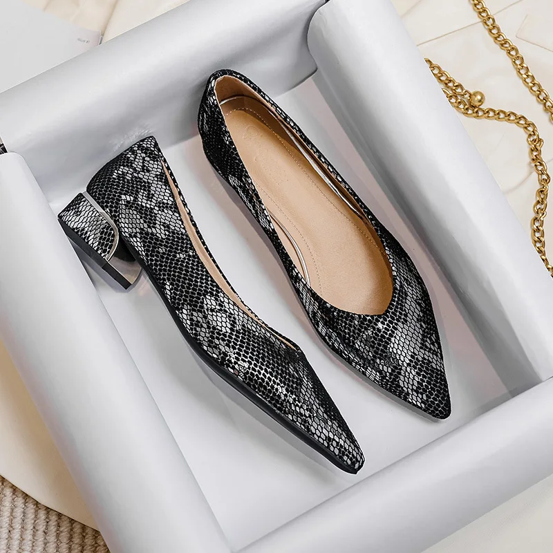 Туфли-лодочки женские кожаные с острым носком, повседневные туфли-лодочки, кожа, змеиная кожа, высокий каблук, для вечерние