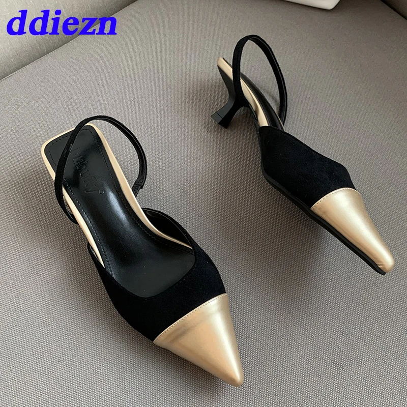 Туфли-лодочки женские на высоком каблуке, с острым носком и ремешком на пятке