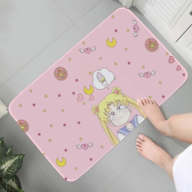Bath Doormat Mat Living Room Bedroom Carpet Washable Flannel Scenic Japan Pink Kawaii Girl Room Carpets Mat bedside Lounge Rug