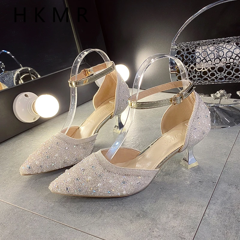 Туфли-лодочки женские с ремешком на щиколотке, на тонком высоком каблуке