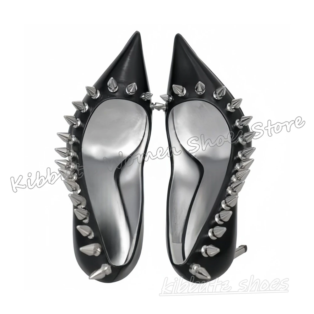 Туфли-лодочки с заклепками в готическом темном стиле, панк-рок, новинка, роскошная модная сексуальная обувь без шнуровки, популярная обувь для девочек, новые однотонные туфли на заостренном тонком каблуке