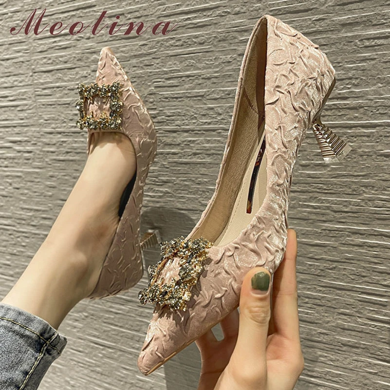 Туфли-лодочки Meotina женские на тонком высоком каблуке, модная Элегантная стильная вечерняя Обувь, со стразами, черные, 39 дюймов, осень-весна