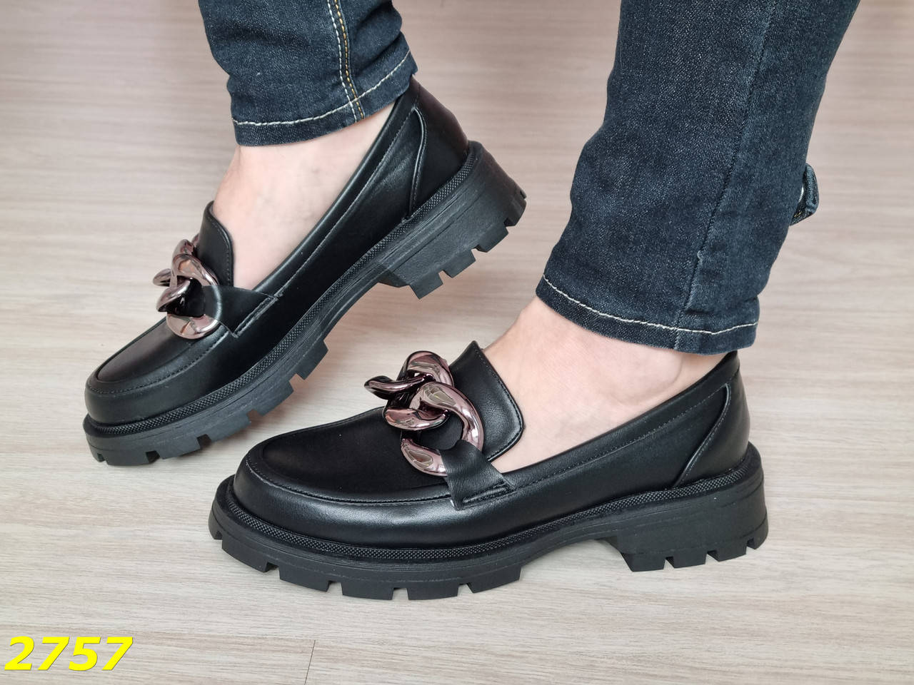 Туфли лоферы на высокой тракторной подошве с цепью, Размер 40 (26 см) 37 (24 см), Черный