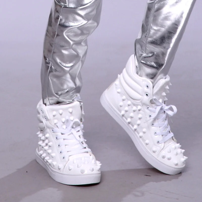 Туфли мужские кожаные с заклепками, высокий каблук для танцев и представлений, стиль певец, панк