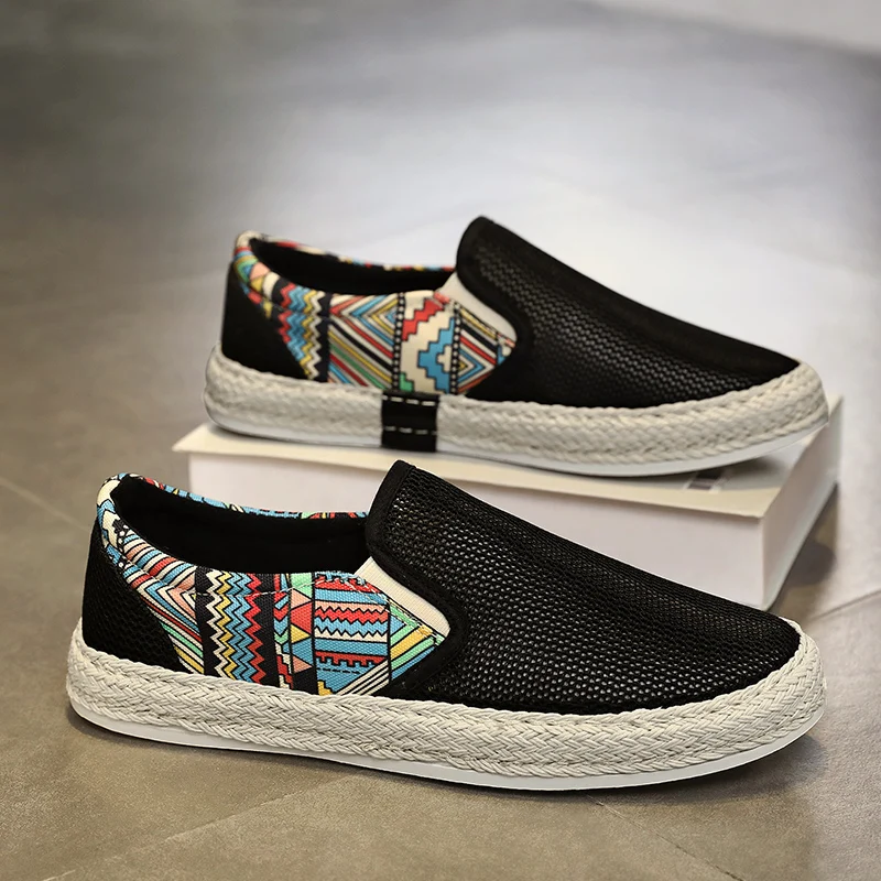 Туфли мужские холщовые, низкая подошва, эспадрильи, граффити, плоская подошва, большие размеры