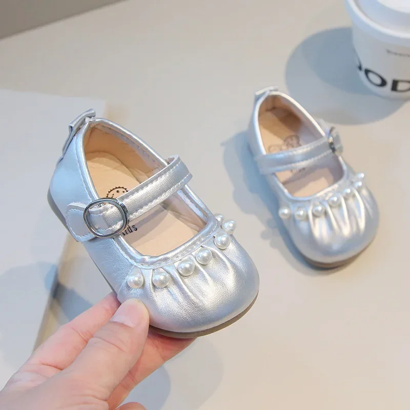 Туфли на плоской подошве для маленьких детей, прогулочная обувь для девочек с круглым носком, милая обувь с мягкой подошвой, новинка осени 202, осенняя обувь принцессы для малышей, повседневная нескользящая обувь