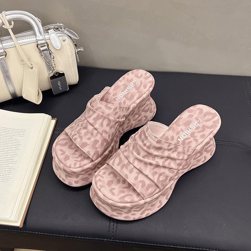 Туфли на танкетке, на высокой толстой подошве, прозрачные шлепанцы на одно слово, женская обувь, носить 2025 лето, новая модная темпераментная крутая обувь 37 розовый